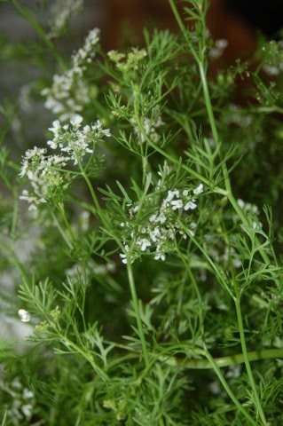 The flowers stems and leaves. Coriander is a wonderful supply of calcium. The blossoms have a lacy ornamental look with minimal aroma.
