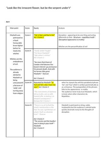 Macbeth Key Quotations Linked To Imagesthemes Use The