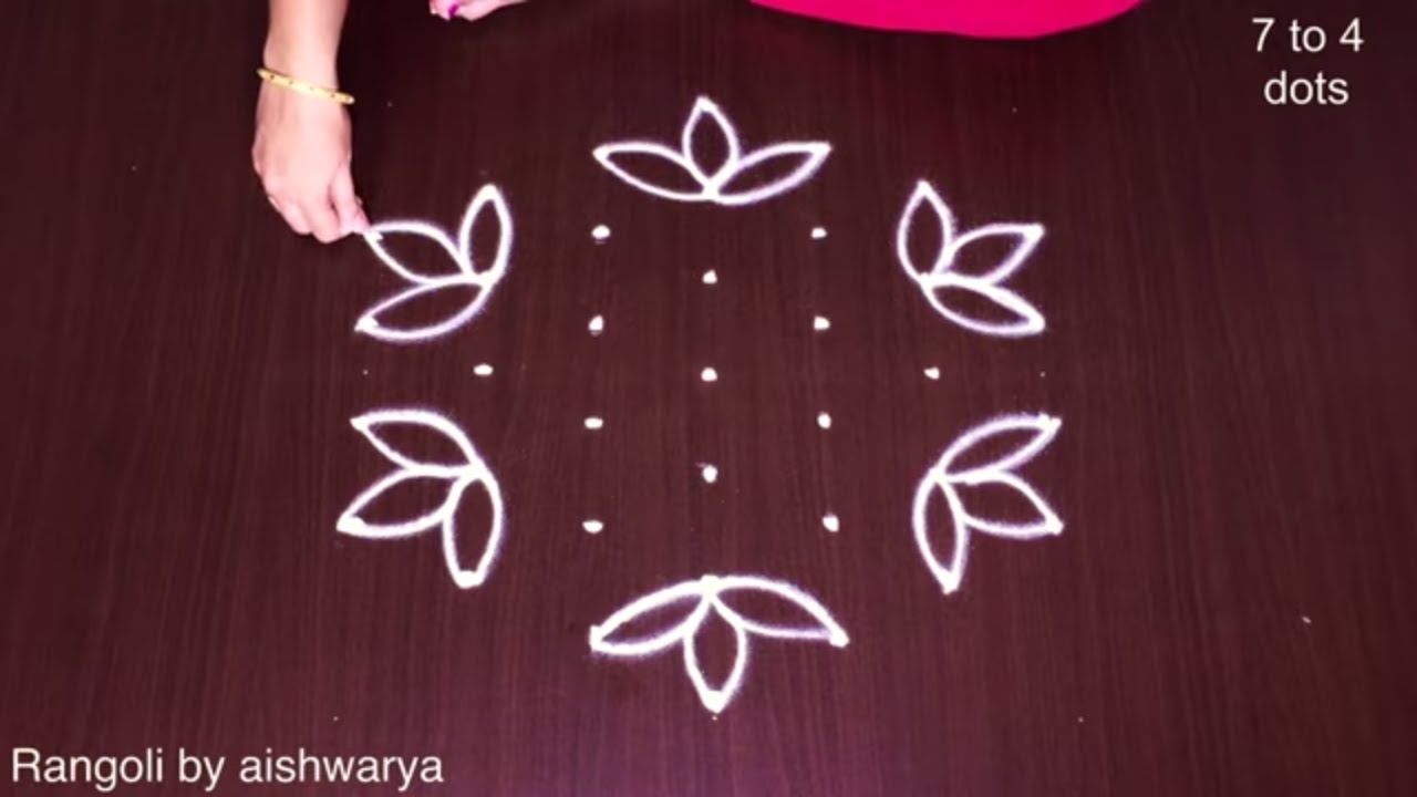 Easy Rangoli Designs With 7 X 4 X 4 Dots Simple Muggulu Artwork Designs With Dots Small Kolam Youtube Flower Rangoli Easy Rangoli Simple Rangoli Designs